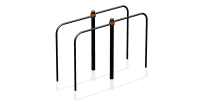 Представленная конструкция подходит для выполнения различных упражнений на улице. Это два разноуровневых турника, которые надежно фиксируются на опорных столбах. Представленный проект спортивного комплекса – это сборно-разборная конструкция, которая доставляется на объект в разобранном виде, после чего собирается на месте монтажа.